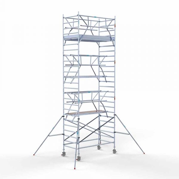 Rollgerüste mit 95 cm Rahmenbreite bieten mehr Arbeitsfläche und Komfort bei gleichzeitig hoher Stabilität. Ideal für längere Einsätze oder Arbeiten mit zwei Personen. Nach DIN EN 1004 geprüft, schnell montiert und robust im täglichen Einsatz – die perfekte Balance zwischen Mobilität und Standfestigkeit.