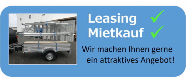 Die Leasingangebote gelten ausschließlich für Gerüstanhänger. Einzelne Gerüste können leider nicht im Leasing oder Mietkauf finanziert werden.