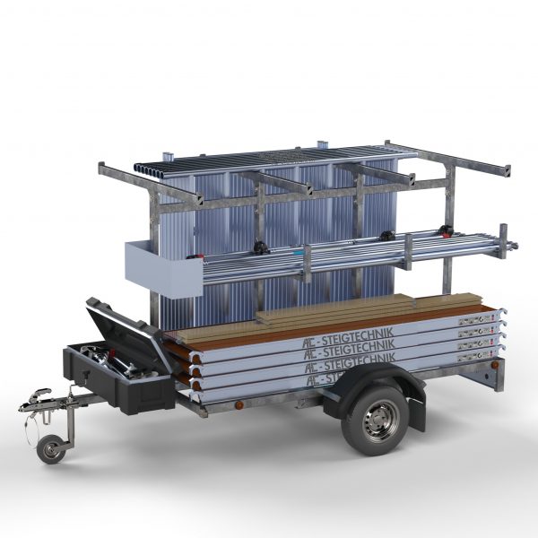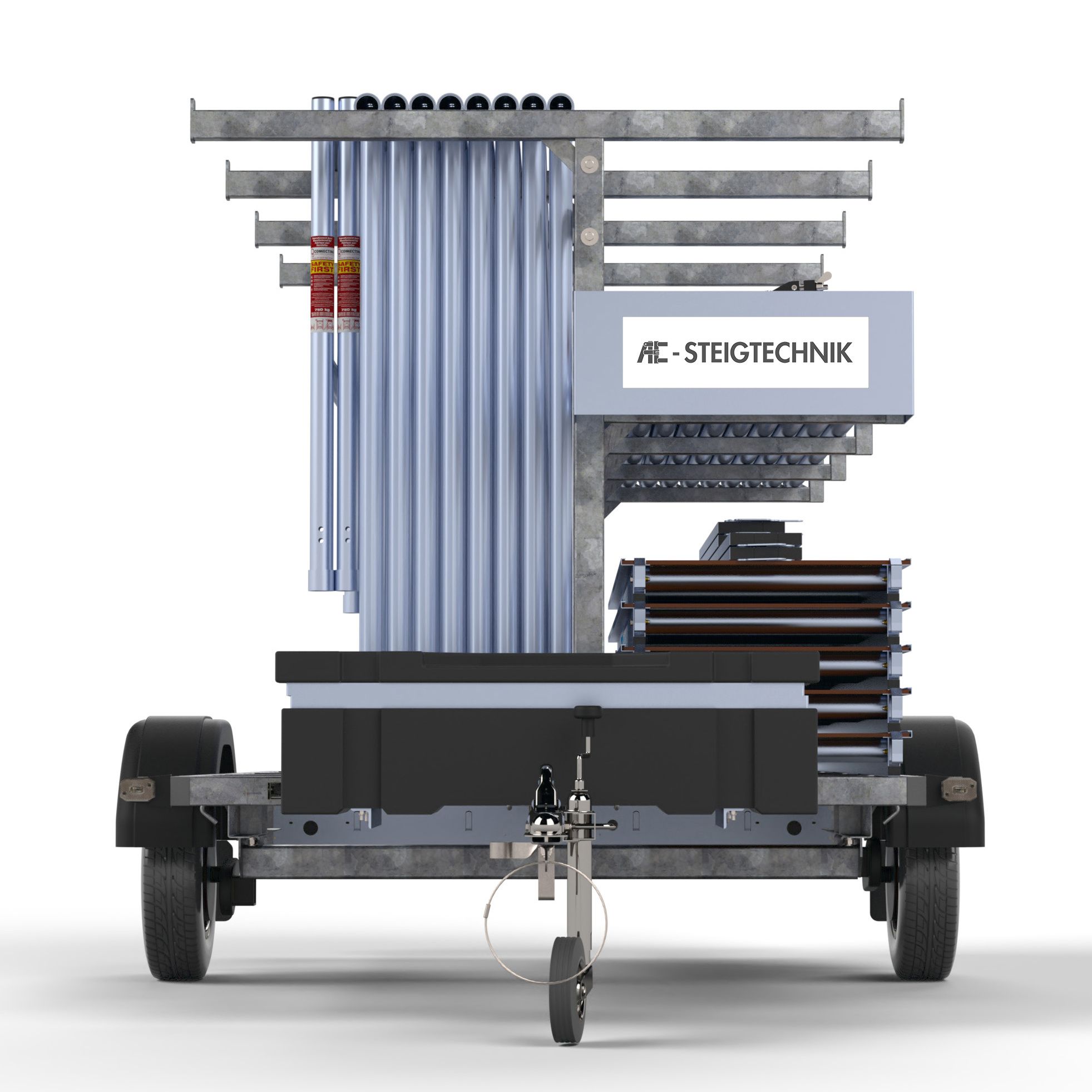 AC Steigtechnik Gerüstanhänger „Basic“ inkl. AC Gerüst „PRO-L 250“ bis 12,30 m Arbeitshöhe, Stellmaß 1,35 x 2,50 m, Plattformlänge 250 cm, Gerüstklasse 3 bis 200 kg/m², DIN-EN 1004, 12811 & 1298, TÜV/GS